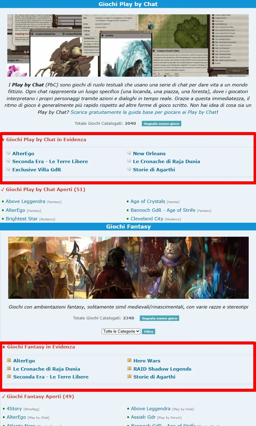 Per diventare un gioco sponsorizzato all'interno del portale basta acquistare i nostri pacchetti studiati appositamente per dare la massima visibilità ai giochi presenti sul portale mantenendo i costi accessibili a progetti amatoriali come i giochi di ruolo online.