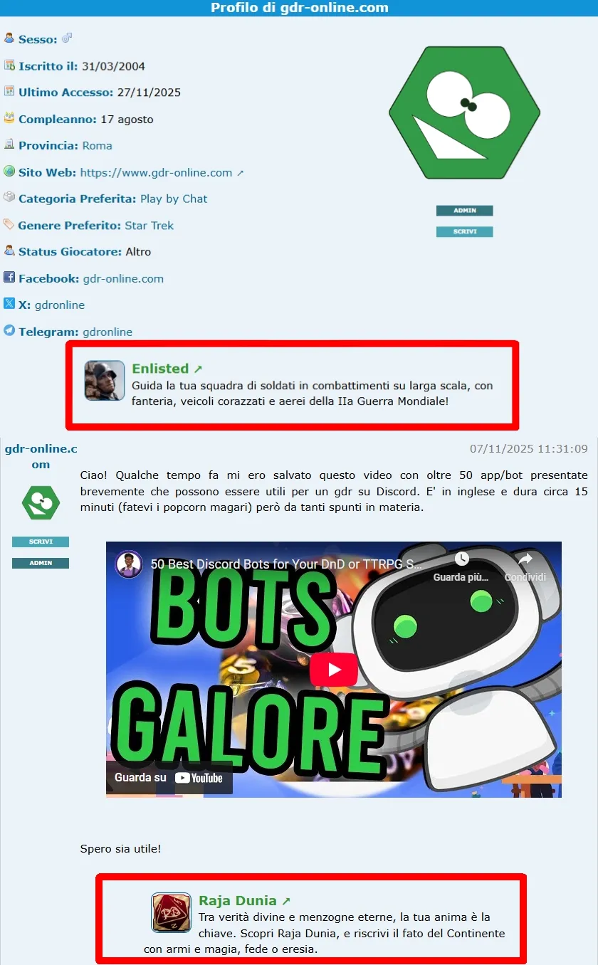 Sponsorizzati con noi! → Sponsorizza il tuo gioco su GDR-online! Trova nuovi giocatori fra i migliaia di appassionati che ogni giorno visitano il portale!